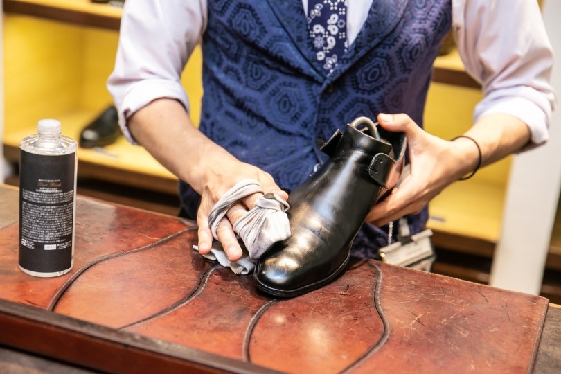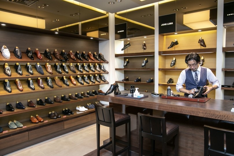 ターミナル1の「シューシャインバー」は、靴磨きのスペシャリストによる各種メンテナンスメニューを用意。磨きのベーシックケアはもちろん、靴のつま先に鏡面磨きを施すハイシャインなども行います。