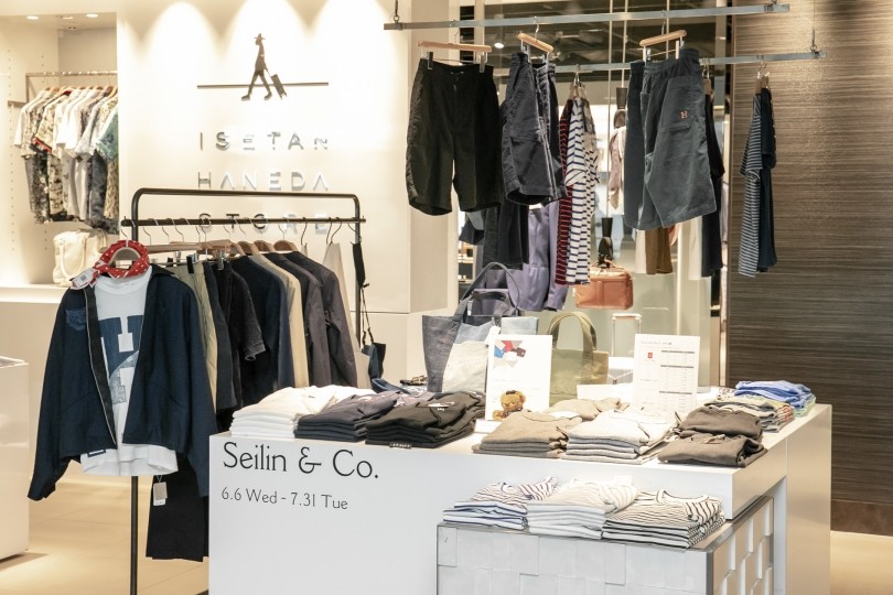 イセタン羽田ストア(メンズ)ターミナル2の一つの名物なのがエントランスに位置するポップアップスペース。7月31日(火)までは「SEILIN&Co. POP UP SHOP」を開催中。聖林公司オリジナルブランドの<ハリウッドランチ マーケット>や<ブルーブルー>を中心に、Hの刺繍でお馴染みのストレッチフライスTシャツやショーツなどのサマーアイテムを展開中。取材時にも搭乗前の女性がご自分とご主人のためにTシャツを購入されていました。