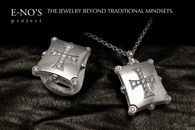 2001年に設立された日本のジュエリーブランド<イーノス>。すべてのコレクションは生産本数に限りがあり、ジュエリー本来が持つ”希少性”を重んじています。そのデザインは、10から30以上ものパーツを組み立てる立体構造を特徴とし、インダストリアルでありアーキテクチュアルなジュエリーを生み出しています。