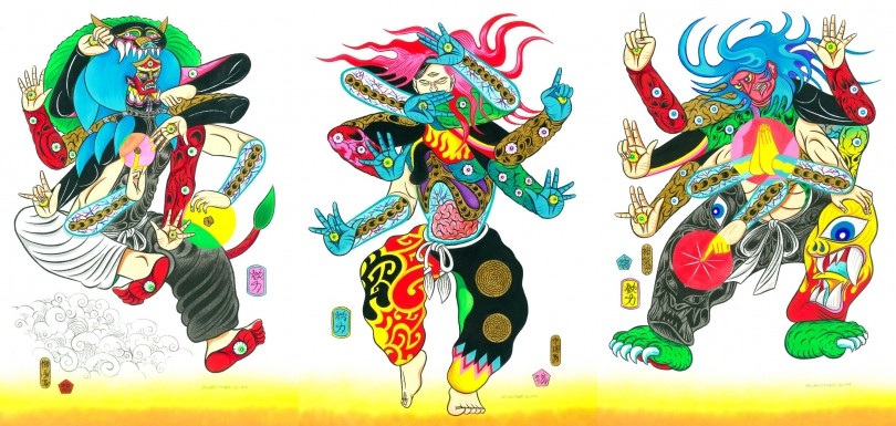 妖怪や宗教的なモチーフに、Hideyuki Katsumata独特の和テイストのタッチで描いた人気キャラクター「hanautah(ハナウタ)」