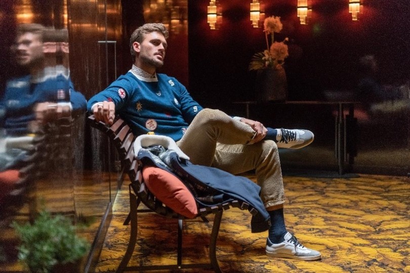 ラギッドスタイルをコンセプトとする今シーズンは、アメリカ・ボストンを背景に、ガレージやバイクからインスピレーションを得たアイテムを提案。レトロなチェック柄シャツをはじめ、スエードやレザージャケットなどをラインナップする。10種類以上ものワッペンと刺繍を施したニットは、大人の遊び心溢れる一着。衿や袖口の配色がアクセントとなり、1枚でも存在感あるスタイリングが楽しめる。インナーにはシャツを、ボトムにはシックなカラーを合わせた、スマートなスタイリングがおすすめだ。