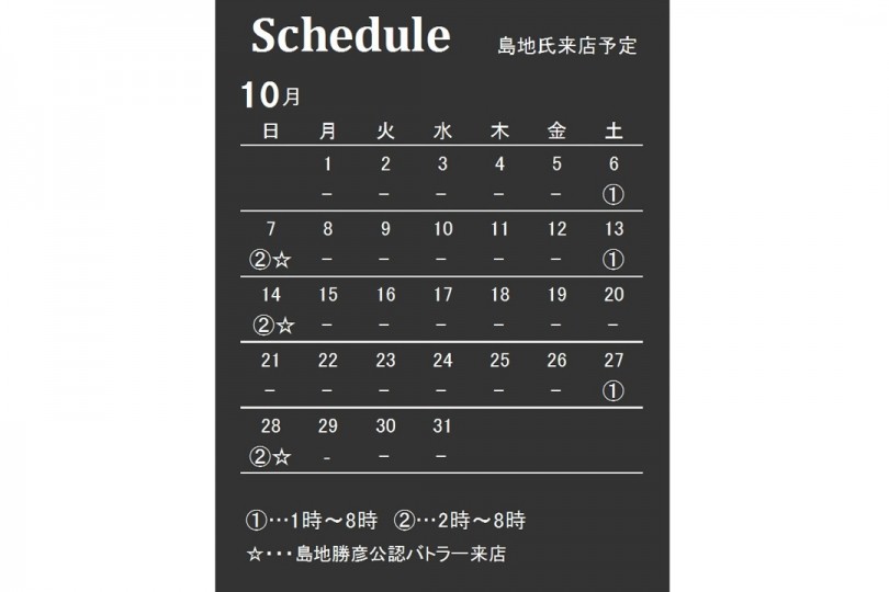 島地 勝彦氏の10月メンズ館来店スケジュール