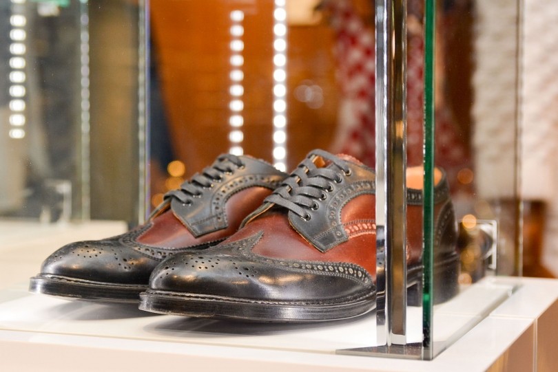 坪内さんはデザインを考える際、自分らしさをどのように盛り込まれるか悩まれるそうですが、お酒を呑まれている時や歩かれている時など何気ない瞬間に”ふっ”とアイデアが舞い降りてくるそう。ちなみにこちらの靴は、4~5年前に坪内さんがご自身用に作成された世界に1足だけの靴です。