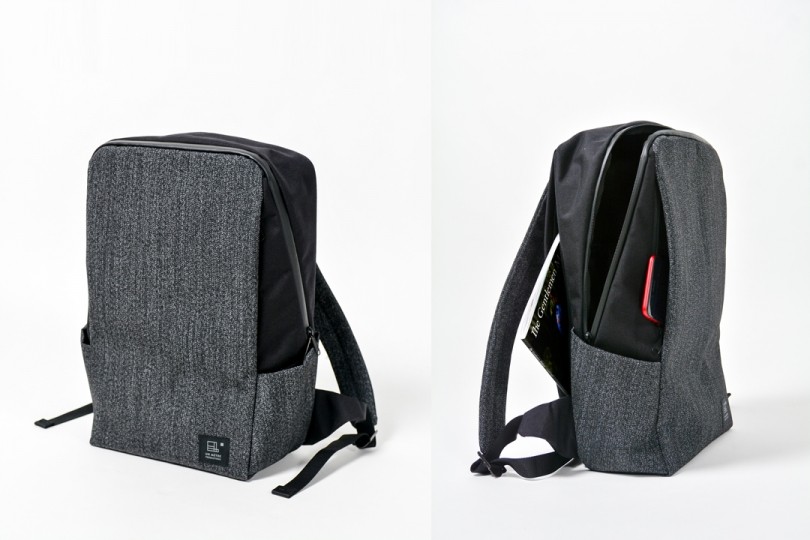 シンプルでベーシックな定番バックパック「Two Line Backpack」の新型は、書類などを収納しやすいフォルムでビジネスユースに対応。ハーネスは身体にフィットするようなパターンカッティングが施されているほか、外側2カ所のファスナー付きポケット、PC収納スペースやポケットが内装されている。ボディの素材には、糸から撚ってオリジナルで開発した杢調のグレー生地を採用し、軽量で強度が高く、撥水機能も備える。