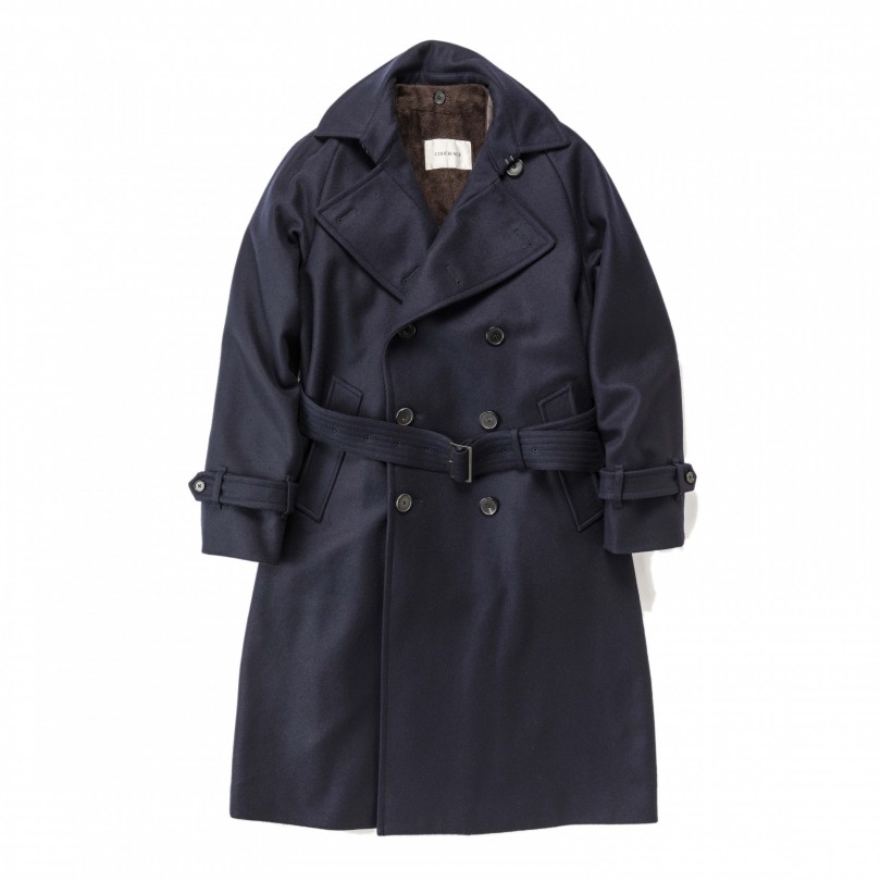 素材から縫製まで、デザイナーのこだわりがギュッと詰まった日本ブランド<コヒーレンス>のトレンチコート。世界大戦期のミリタリートレンチに想を得たモデル「AL III」はエポーレットのないゆるやかなラグラン袖が特徴。たっぷりした身頃、ロング丈の腰高の位置にウエストベルトという今一番着こなしたいデザインに、ウールカシミヤ素材を載せた三越伊勢丹限定コートだ。