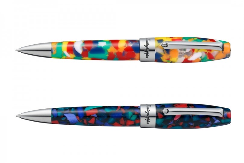 また、”持つ人に幸運を招く”という意味を込めた「フォーチュナ」シリーズは、多面モザイク樹脂を彩り豊かに組み合わせた一本。モザイクアートの典型的なカラーと、現代的なシルエットを融合させた印象的なデザインは、イタリアブランドならでは。2色の新色が登場。