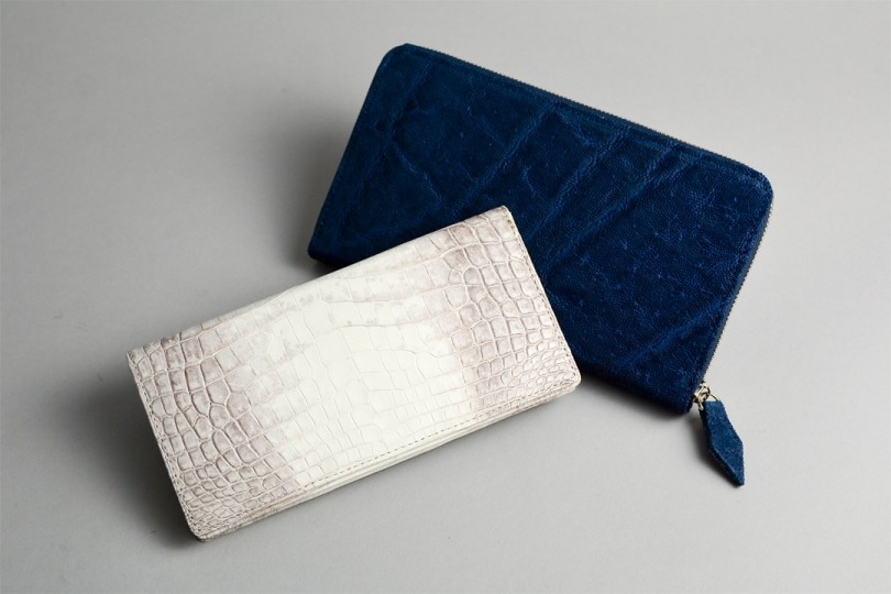 今回は<レザック>に加え、2004年に同ブランドから誕生した<Quattro Gatti/クアトロ ガッティ>も登場。クロコダイル革やヘビ革、象革といった、エキゾチックレザーを贅沢に使ったラグジュアリーなアイテムは、財布や名刺入れ、小銭入れ、札ばさみといったスモールレザーグッズから、トートバッグやブリーフケース、ボストンバッグ、クラッチバッグと、幅広いアイテムが一堂に揃います。