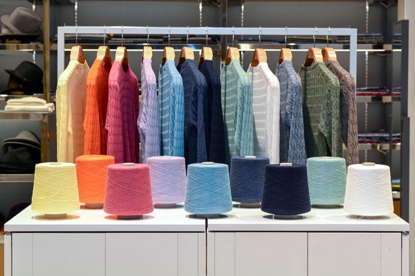 <グランサッソ>の春夏ニットの代表格といえば、ブランドを代表する素材フレッシュコットン。強撚糸で編みこまれた、シャリ感とドライな手触りが特徴のニットは、さらりとした肌触りで高温多湿な日本の気候にぴったりだ。今回のプロモーションでは、このフレッシュコットンを用いた12ゲージのケーブルニットにフォーカス。イタリア随一の規模のファクトリーブランドだからこそ実現した、9色もの美しいカラーバリエーションを揃えて登場する。