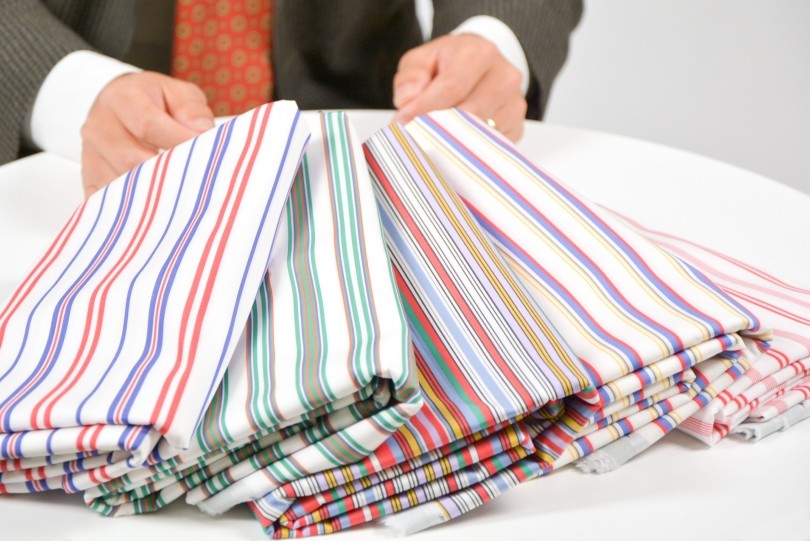 <ミナミシャツ>では<トーマス・メイソン>の貴重な生地を用意。各色限定のオーダーとなる。