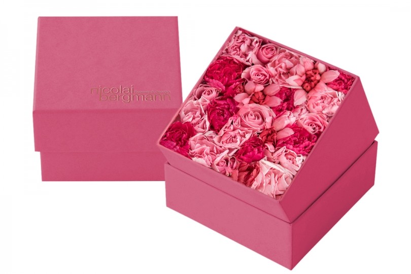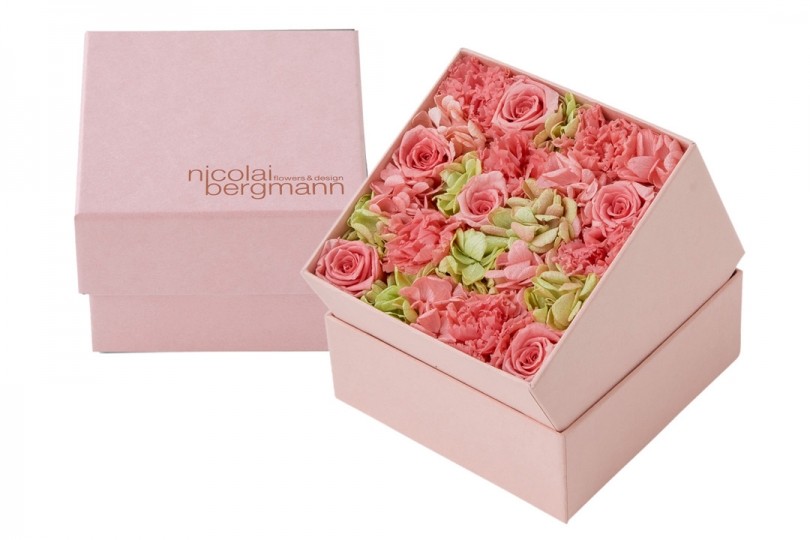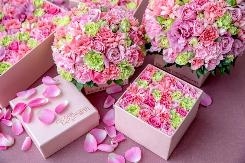 今年の「マザーズデイコレクション 2025 - Nostalgic 25」は、フラワーボックス誕生25周年を迎えるのにふさわしく、初期のフラワーボックスを象徴するグリーンと、母の日らしいピンクの蓋を組み合わせた特別なデザイン。ニコライ バーグマンのロゴをシルキーローズ色の箔押しで施し、優しさと上品さが際立った限定フラワーボックスやフラワーキューブに仕上げています。
