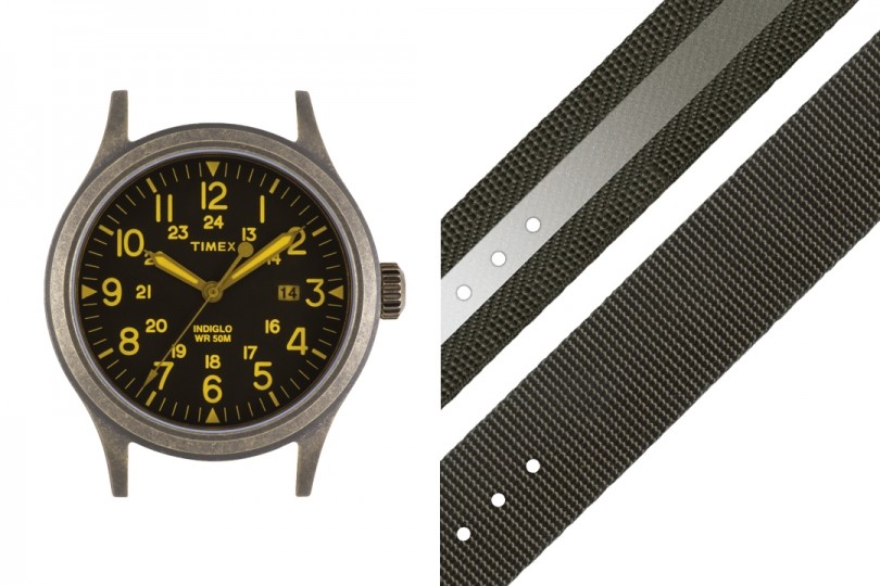 ミリタリーウオッチがベースとなるケース径40mmに、視認性の高い文字盤には24時間表示も印字、さらにデイト機能、蓄光針とアウトドアのあらゆるシーンで活躍する機能を搭載。