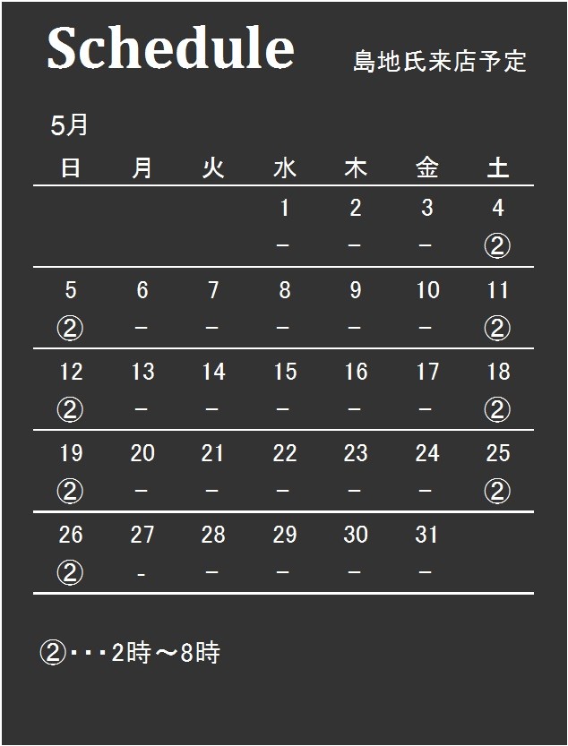 *都合により、来店予定が中止または変更になる場合がございます。また、時間帯により不在の場合がございます。