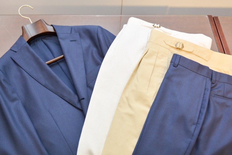 こちらは毎回好評を得ているスペシャルセット。ジャケット1着に対して、パンツ3本のセットになっているので、アクティブにお仕事される方や座り仕事が多い方などパンツが傷みやすい方や、これからのクールビズでジャケットが不要になる方には是非おすすめしたい。オーダーというとスーツのイメージが強いが、パンツも千差万別なので採寸して作るだけで着心地、見た目が見違えるほど変わる。さらになんと今回は、パンツ1本セット 73,400円、パンツ2本セット 95,040円もご用意し、着用シーンや用途によってパンツの組み合わせが自由に選べるのも嬉しい!