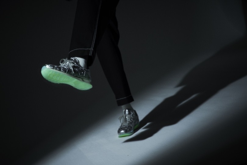 今回のポップアップで登場する「TIGER ALLY DELUXE」シリーズの新作2型は、1980年代展開されたランニングシューズをベースに、「NIPPON MADE」スタイルにアレンジ。80年代の煌びやかなナイトクラブシーンやディスコシーンをイメージしたデザインで、アッパーやソールに採用された特殊なホログラムパターンレザーや蓄光プリントなどの視覚ギミックが特徴だ。