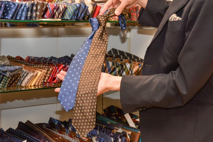 また、シャツが<ルイジ ボレッリ>や<フィナモレ>なら、ネクタイは<タイ ユア タイ>や<ルイジ ボレッリ>、<ステファノ・ビジ>、<フランコ・バッシ>がお似合いです。人気のインポートネクタイは圧巻の品揃えで、トレンドのレジメンタルを始め、各ブランドに特色があって、見る・選ぶ・装うことが醍醐味に。