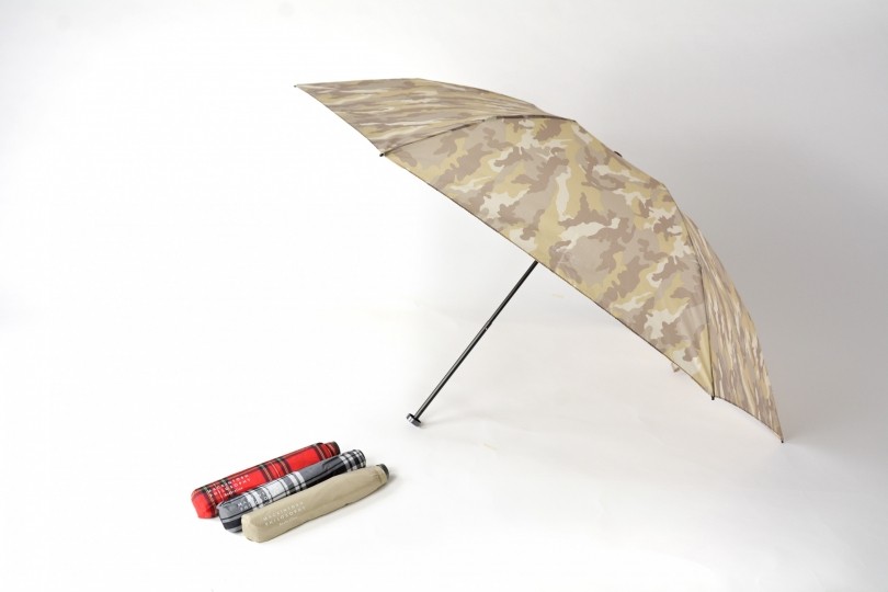 1946年創業の東京・日本橋に工房を構える<ラムダ>からは、簡単開閉のクイックオープン式で、きれいなフォルムが特徴の折り畳み傘を。折り畳み傘には珍しい8本骨の耐風仕様で、強風で傘がおちょこになっても、固定接続部分に遊びが効くことで元通りになり、骨が折れにくい構造です。