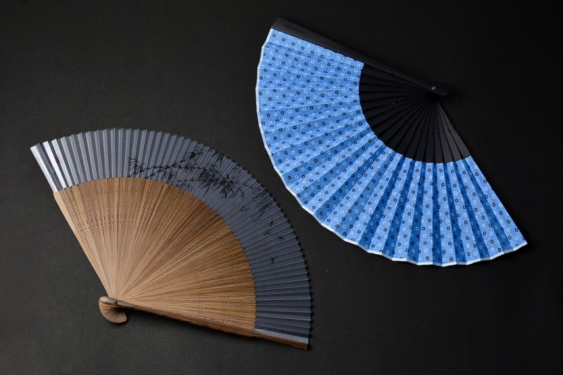 1718年に京都で創業した<白竹堂>は、伝統を継承しながら今のニーズにあった扇子を提案しています。京扇子とは、扇面、扇骨、仕上げ加工まですべて京都市を中心とした国内で生産した扇子のこと。松の葉のような緑色は、長寿の意味を持つ松から、めでたい色とされています。