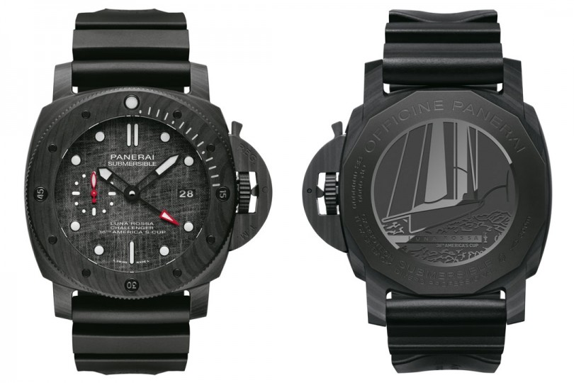 ヨットレースの最高峰として知られるアメリカズ・カップに挑戦する、イタリア代表のルナ ロッサ セーリングチームの着用モデル。独特なパターンのダイヤルは、ルナ ロッサ艇のカーボン素材のセイル実物を使用している。