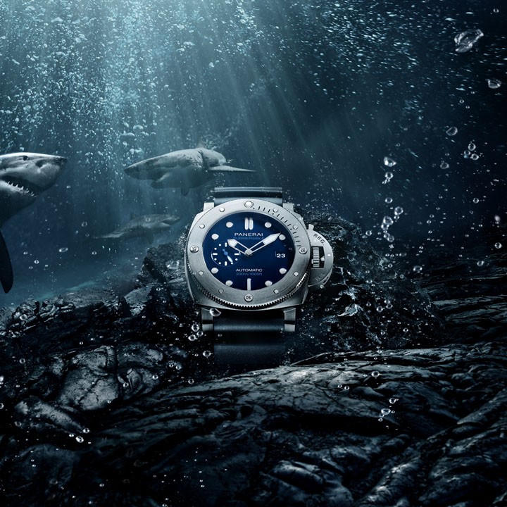 新生「サブマーシブル」が担う役割は、まず新しいラグジュアリーの在り方の模索。そしてさらに重要な点は、近年の<パネライ>が注力する独自素材を盛り込むキャンバスとしての役割だ。