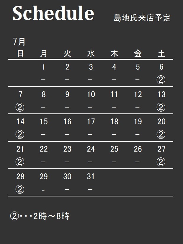 *都合により、来店予定が中止または変更になる場合がございます。また、時間帯により不在の場合がございます。