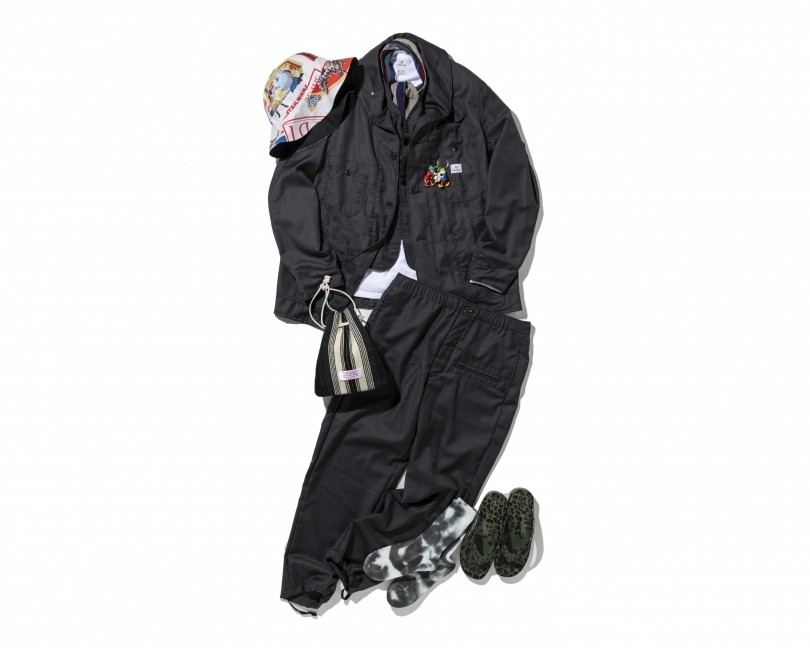 「ウィークデイに好きな格好をできる方ばかりではありませんし、例えば旅行のような非日常を意識しながら、休日に気分をアゲてくれるファッションアイテムをご提案したいんです。アイテム構成は、ポケTに合わせやすいというのが大前提。僕は1年を通じてほぼポケTしか着ないし、サンダルしか履かない。甲州印傳が好きなので、バッグは巾着ばっかりなんですよ」