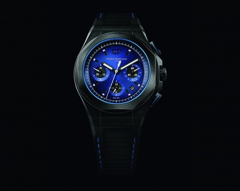 2019年に登場した「ロレアート」のスポーツモデル。径が拡大されたTiケースにはブラックのPVD加工。防水性は一気に30気圧までアップされ、クロノグラフ用のプッシャーはケースサイドのラインに合わせた美しいカーブを描く。なおブラック&ブルーは今年のテーマカラーだ。