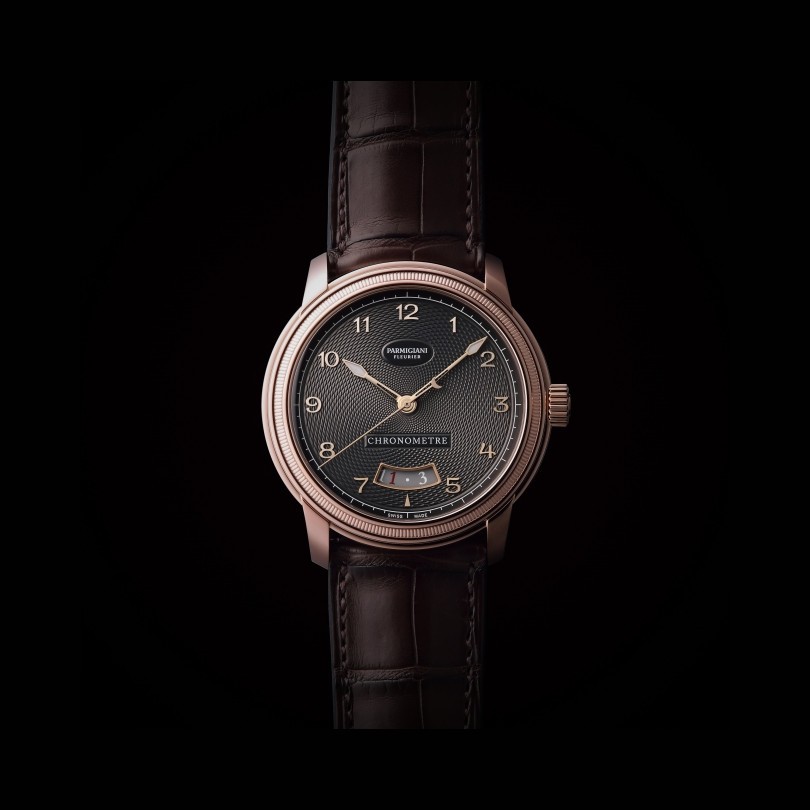 “ライスグレイン”と呼ばれるギヨシェダイヤルを採用した新作。カリテフルリエに用いられた特別なダイヤルが、通常のクロノメーター(COSC仕様)でも愉しめるようになった。仏語で“アルドワーズ”と呼ばれるスレートカラーの色味も実に美しい。