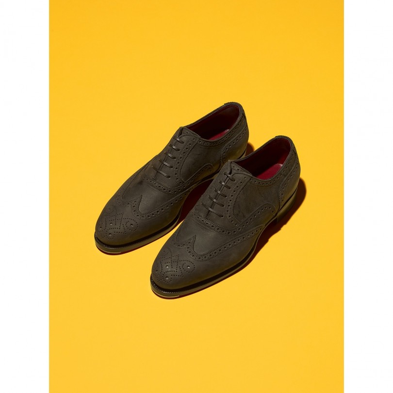 「革の魔術師」とも呼ばれた靴職人、ステファノ・ベーメル。彼が天に召された後も、その伝統は工房の職人たちの手で引き継がれている。日本ではあまり馴染みのないアフリカ原産のウシ科の動物「クードゥー」の革を使ったフルブローグは、同ブランドらしい一足。シワや凹凸が多く、マットな質感の革は、野趣という表現が相応しい。