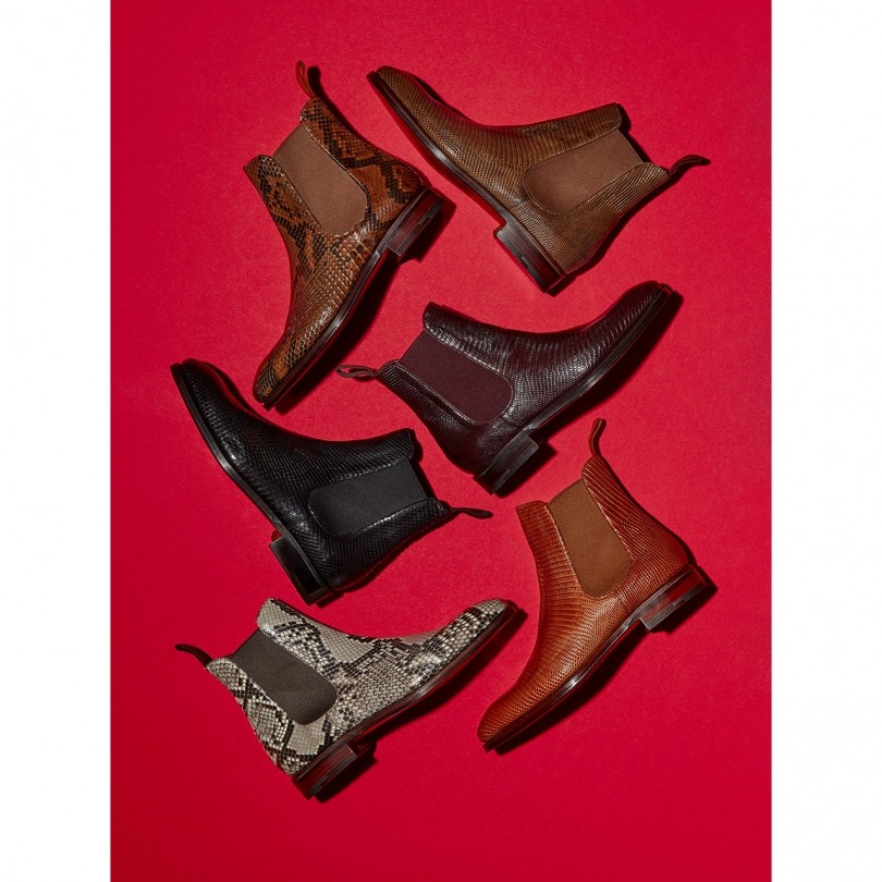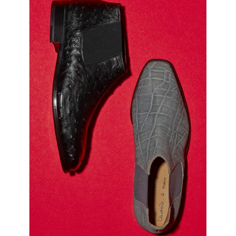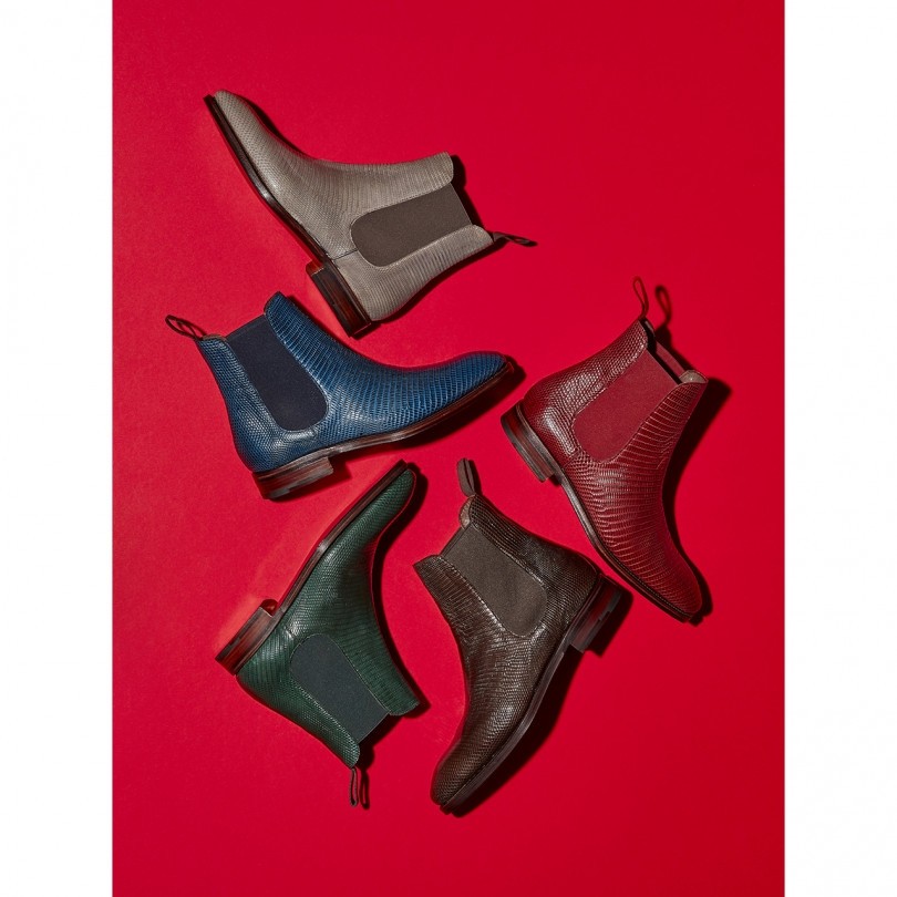 しっかりとしたグッドイヤーウェルテッドの靴で知られるスペイン・マヨルカのブランドは、各種のプレシャスレザーを得意としている。全8色展開のリザードと、3色展開のパイソンを大きな面積で贅沢に使ったチェルシーブーツ。