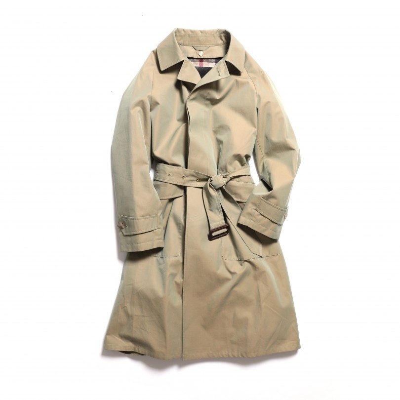 乗馬用コートとしての伝統的なディテールを配した「リージェンシー」をベースにリファインしたこだわりのホースライディングコート。素材には艶感の美しいコットン・ソラーロを用い、ゆったりしたシルエットに仕上げているので、スーツの上に羽織ってもきれいに着こなせる。高い位置のベルト、深いプリーツなど、男心をくすぐる逸品は、ブリティッシュスタイルの最後の仕上げに最適だ。
