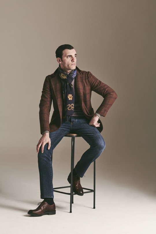 また、今回のピックアップファブリックとして、英国「フォックスブラザーズ」にフォーカス。仕立て映えのする打ち込みのしっかりした生地とナポリの柔らかな仕立てによるマリアージュをお愉しみいただきたい。