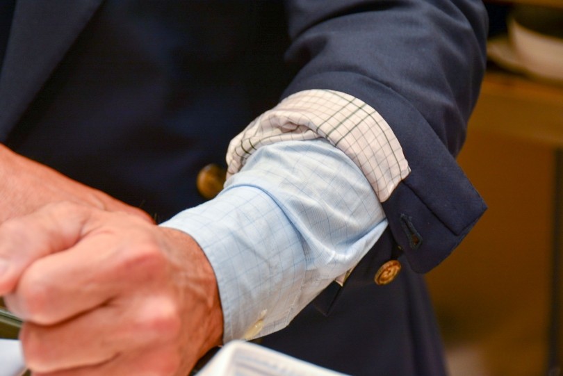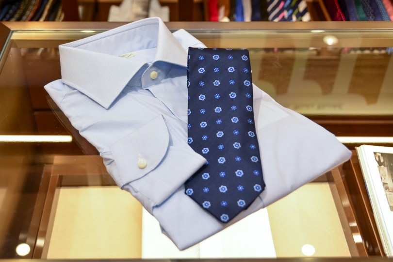 コーディネートの妙技を伺うと、何でもファビオ氏は、朝のコーヒータイムの後にコーディネートを決めるとか。しかも、ジャケットやパンツからではなく、シャツとタイを第一に選ぶそうで、二代目当主として手腕を揮うファビオ氏らしさが感じられる。
