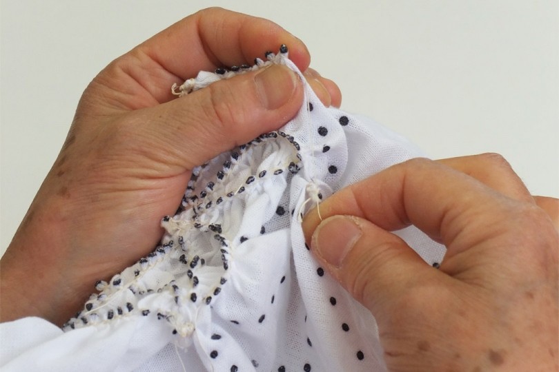 「有松鳴海絞り」は、古くから“括る、縫う”と言った素朴な仕事を通して、浴衣や着物などにその培われた繊細な文様を咲かせてきたが、この繊細な技法も衰退をたどり、職人の数も減少、そして最盛期100種類以上あった柄は、半分以上この世から姿を消してしまった。
