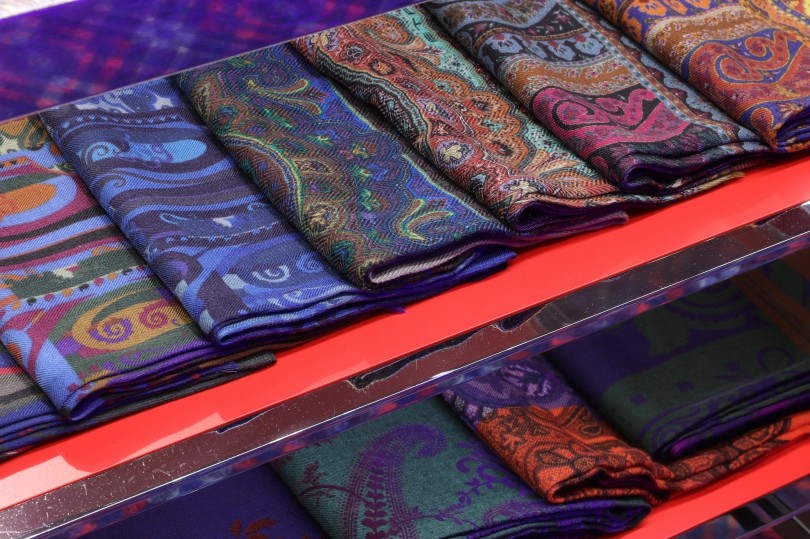 創業当時から<エトロ>のDNAであり、ヘリテージであるテキスタイル。今回のポップアップストアでは、さまざまな形に表現されたブランドアイコンであるペイズリー柄をはじめ、豊富なバリエーションをラインナップする。
