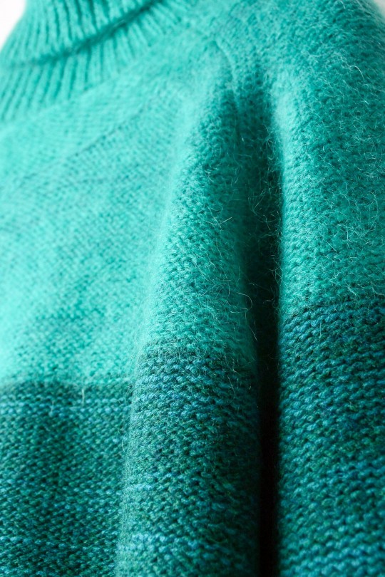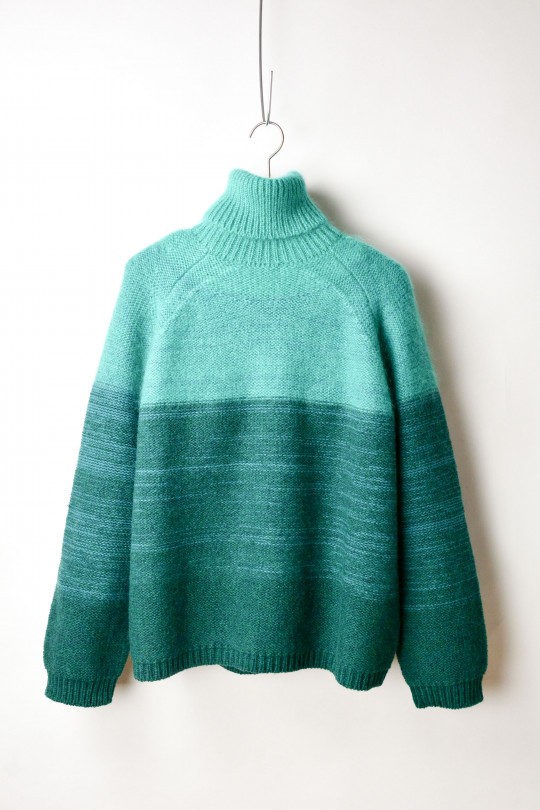 光のグラデーションをイメージした芸術的なデザインは勿論、キッドモヘアを混紡した風合い柔らかな肌触りも特徴的なセーター。つい難しく捉えがちなアートを、まずは見て・着て、体感してみては。