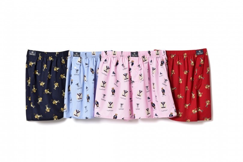 トランクス(M/L)3,300円(LL)3,630円最後はギフトの大定番、トランクス。クリケットセーターやスニーカーを配した「プレッピーベア」と、今シーズンを代表する「ラグビーキッカーベア」を、それぞれ全面にプリント。こんなキュートなトランクスなら、女性もギフトに選びやすいはず。