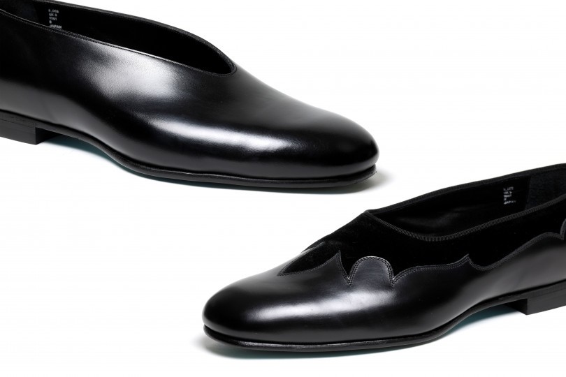 「昨季の白黒コンビシューズと今季のカットシューズによって、<カルマンソロジー>としてのデザイン的振り幅を確認することができました。このカットシューズは、紳士靴におけるパンプスを目指したもの。紳士靴というのは手法やラインにこだわりつつも、最終的にオーソドックスな定型に近づけるという考え方に囚われがちです。でも婦人靴のパンプスやハイヒールは、女性の足を美しく“魅せる”ということに特化している。この美しく“魅せる”カッティングラインを、紳士靴に落とし込んでみたいと思って作ったのが、カットシューズというシリーズなんです。履いたときの肌の見せ方、V字と隙間の作り方──カッティングによって生み出される美しい中性的な足のカタチこそ、このPAGE.04における最大のテーマといえるかもしれません」