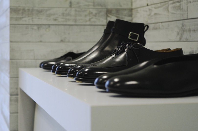 シューズデザイナーでありながら、金具の加工や製品の仕上げ、磨き、さらにはディスプレー用の資材まで自らの手で行わなければ気が済まないというほどのこだわりは、まさに“靴人”ならでは。そして仕事量が激増する別注依頼にも、「別注というのは、自分のなかで考えていなかったことにもチャレンジできる。自分のためにもなるのでまったく苦にはならない」というのだから、もはや感嘆を超えて唖然とするほかないだろう。