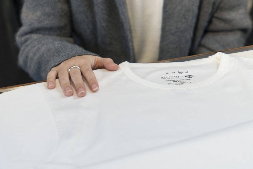 ならばと植松が思いついたのは、紳士肌着バイヤー時代に発掘した<armi/アーミー>だった。白いTシャツに特化して、メイド・イン・ジャパンにこだわり、素材も工場もひとつずつデザイナー自ら訪ね歩いて吟味している<アーミー>なら、英国クラシックの伝統とものづくりの精神をもつ<マッキントッシュ フィロソフィー>ときっと響き合う。すべてはここから始まった。