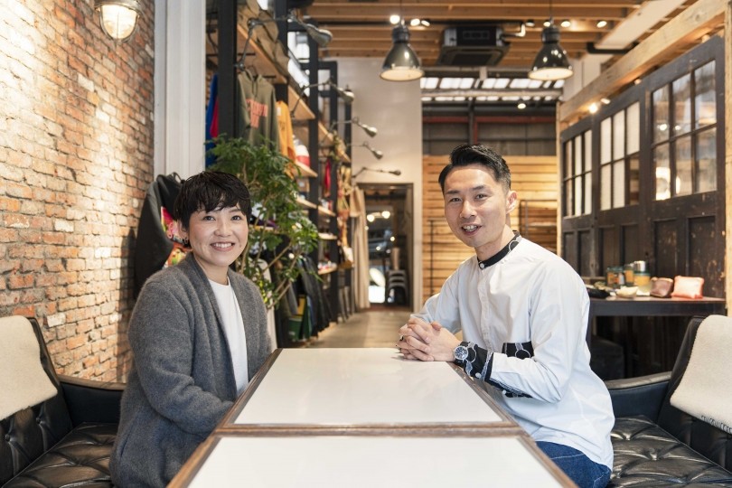 <アーミー>デザイナーの河内あゆみさん(左)と伊勢丹メンズ館7階=メンズオーセンティック・バイヤーの植松義雄(右)