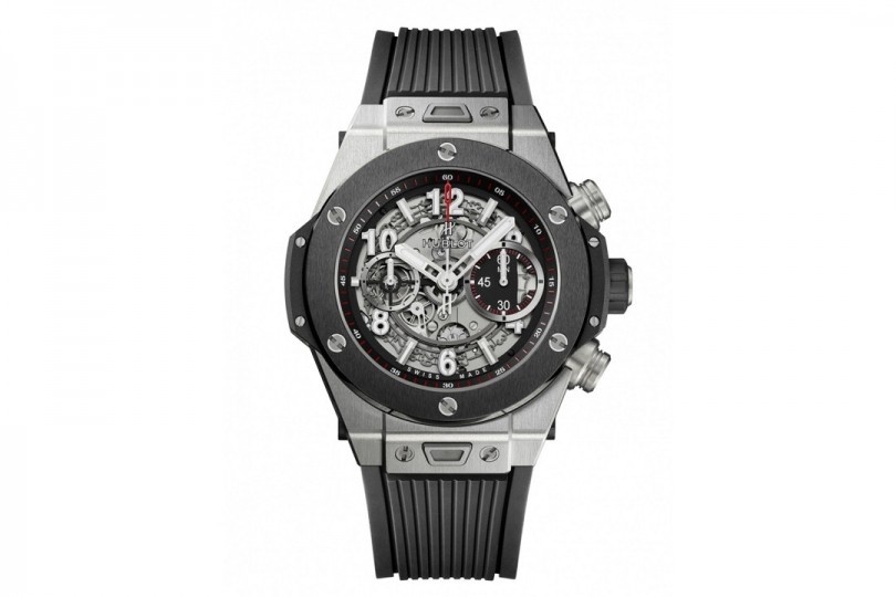 〈ウブロ〉で根強い人気を誇る「ビッグ・バン ウニコ」にも注目したい。自社製造・開発ムーブメント「UNICO」を搭載した本モデルは、パワーリザーブも約72時間と利便性に長けている。〈ウブロ〉が得意とする異素材の融合がなされたこのモデルは、ケース部分のチタニウム、ベゼルのセラミックの存在感と、ラバーストラップが生み出す抜け感が絶妙なバランスでできている。