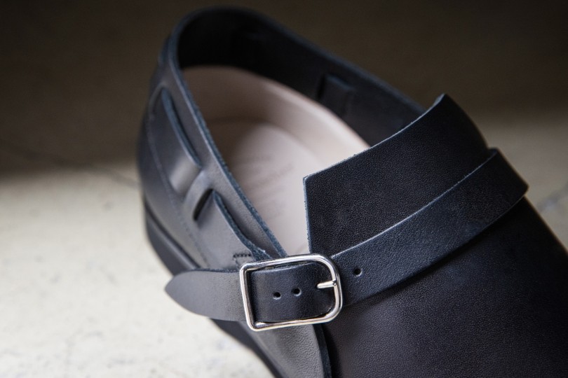今シーズンの新作のなかから、4品番について、竹ヶ原がそのデザインのリソースを解説する。「無いから作りたい」に始まり、「やってみてわかったこと」が多々あるというそれぞれのモデルの背景に、デザイナーの「今」が映し出されている。1.SINGLE STRAP SHOES/シングル ストラップ シューズ