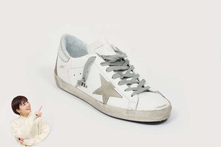 小倉:ラグジュアリーなスニーカーの代名詞といえば、〈ゴールデン グース〉ですよね。私も憧れのブランドです。オーバーオールなどのワークテイストなアイテムと合わせてとことんカジュアルなコーディネートを楽しんでいただきたいと思います。ヴィンテージライクな風合いを生かしつつ、合わせるアクセサリーや小物でバランスをとるとワークテイストに少し抵抗がある方でもチャレンジしやすいかも!