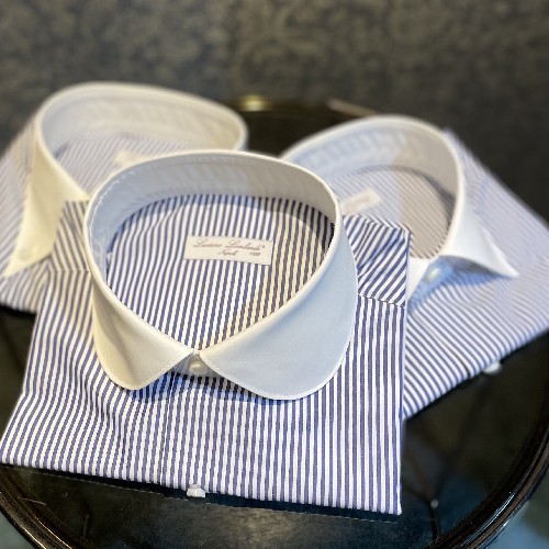 <カミチェリア・ロンバルディ>は1892年創業のイタリア最古のシャツメーカー。創業当時はビスポーク(オーダーメイド)専業で、キアイア通りに住むエグゼクティブを顧客としていた。それが評判を呼び、王侯貴族のシャツも受注するようになる。当時の採寸データは、現在でもナポリの店舗で保管されているという。