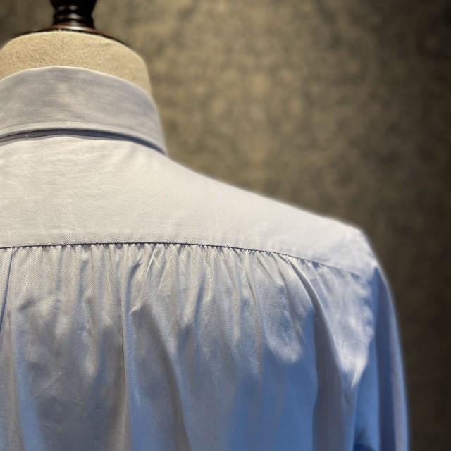 いせ込みながら袖付けやヨーク付けを行うことで、装飾的な美しさと、立体的な着心地を兼ね備える。