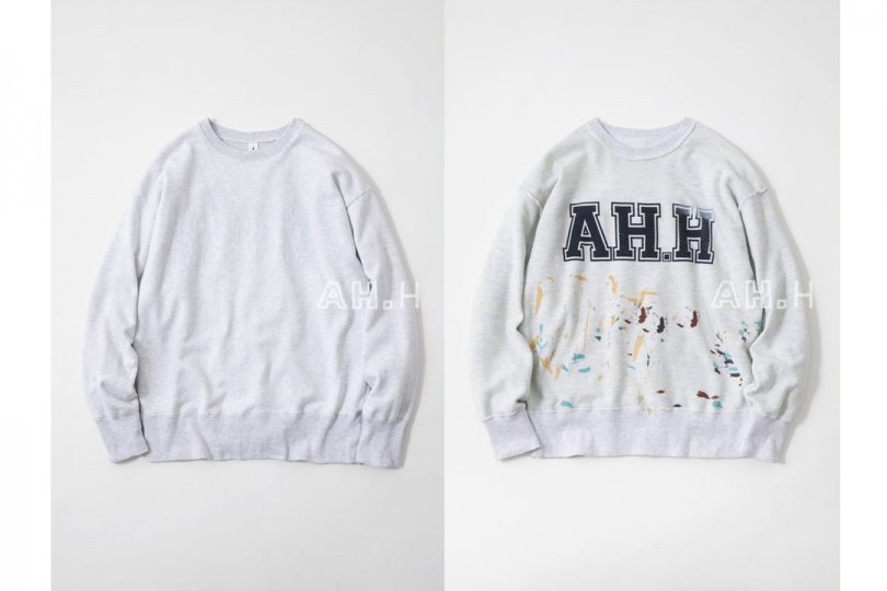 ファッションディレクターの⻑⾕川昭雄氏と、WEB マガジン「フイナム」がタッグを組んだメディア『AH.H』。今回のポップアップでは、長谷川氏監修のもと、WEBマガジン『AH.H』とのコラボレーションアイテムの販売を実施。オリジナルで一から生地を作り、リバーシブルでも着られるというスウェットの新しい価値観を提案するユニークなアイテム群は、グレーをベースカラーに、ホワイトとネオンの色糸がそれぞれミックスされた全2色がラインナップする。