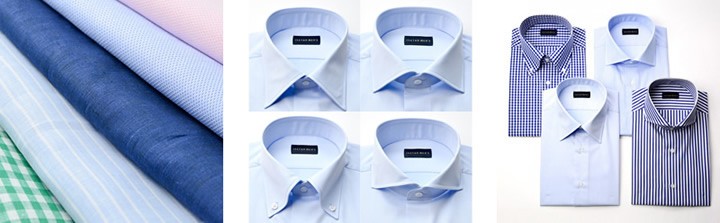 生地は、常設では取り扱いのない色柄やカジュアルテイストの生地もご用意。襟型はレギュラー、ワイド、