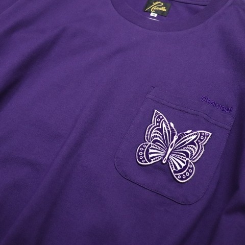 左胸に<Papillon/パピヨン>のワッペン、ポケット上に<チャコール>のロゴ刺繍を施したクルーネック半袖ポケットTシャツ。ボディは<ニードルズ>のベースを採用し、<ニードルズ>の22春夏シーズンを象徴するワッペンをポケットTシャツに搭載したスペシャルな一着です。
