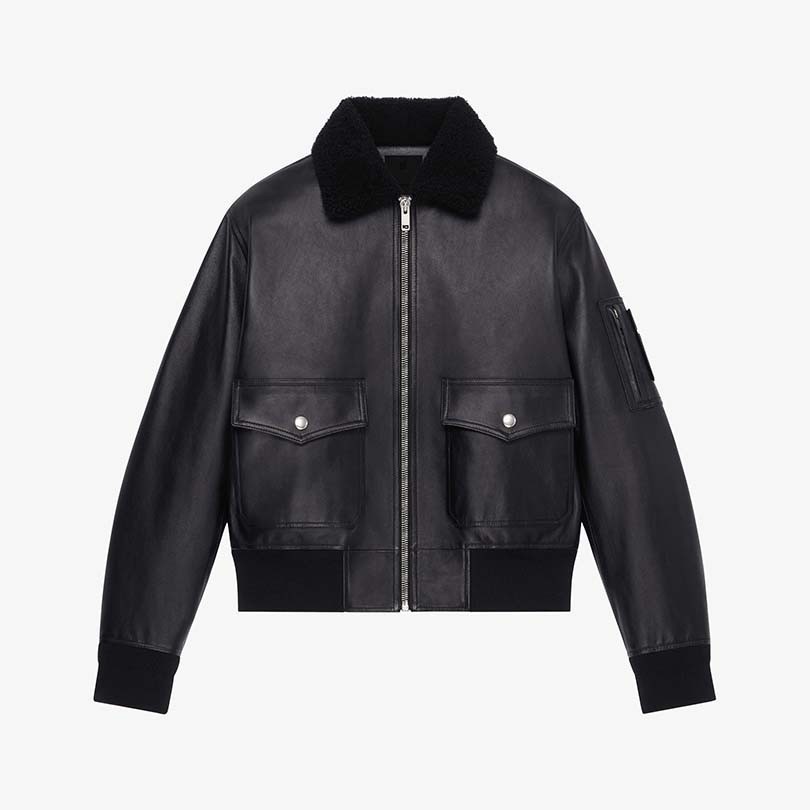 LEATHER AVIATOR WITH SHEARLING COLLAR