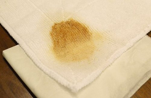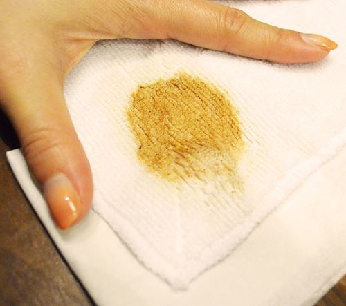 ②よく絞ったハンカチやタオルで叩くように落とします。